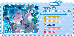 - Vintage Software: hatsunemikuv4x17, worldismine-divaf2nd16, worldismine-divaf2nd20, venom14, vampire12- Rank Up (5. Rank 05): hatsunemikuv4x13, glossymixture01, rabbithole19, kagaminelen04, gigaremix07, magicalmirai201903, chaos crystal, +30 shards